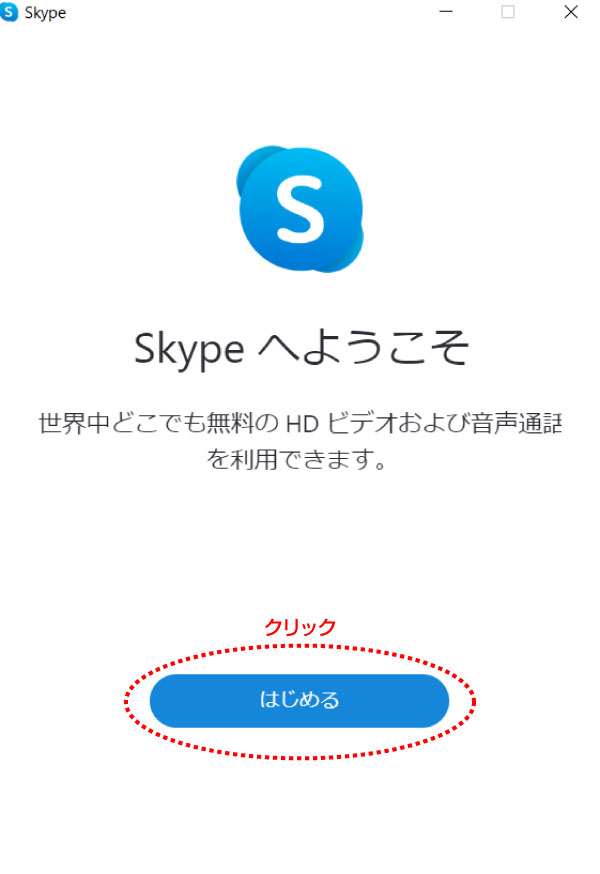 Skypeが起動します。【はじめる】をクリックしてください。